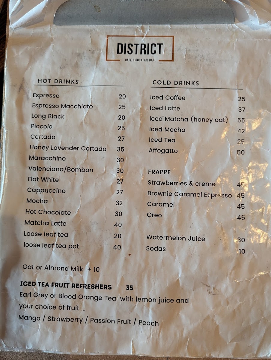 District Cafe & Cocktail Bar Menu
